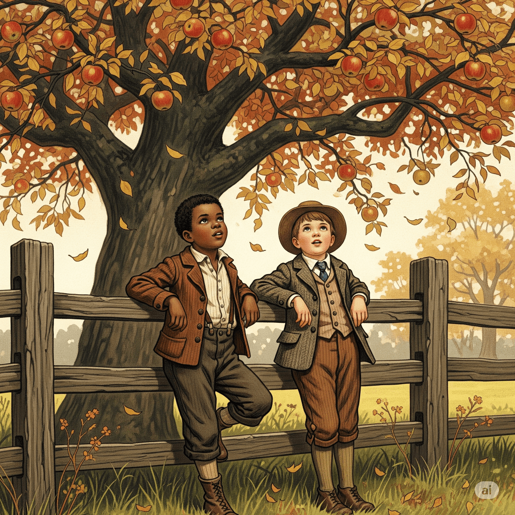 “Picked Right” by Nina D. Smith, published by Bright Bunny Books © 2025. Retelling of “The Boys and the Apple-Tree” from Little Ann and Other Poems by Jane and Ann Taylor.