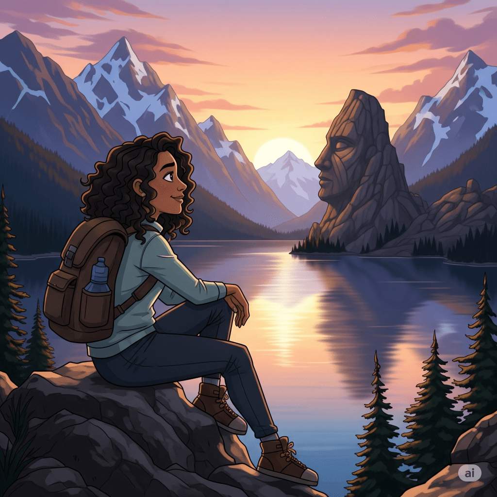 Maya blinked. She remembered her grandpa telling her about it once. “That’s Stoneface,” he’d said. “Some people say the mountain watches over the lake. Some say it listens.”
