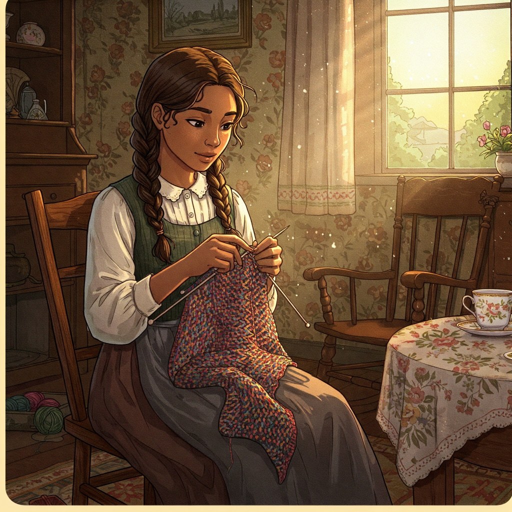 By the next morning, Anna had decided to use the salvaged yarn to make a new shawl—a gift for Mrs. Williams, an elderly woman who lived at the care home. Mrs. Williams always seemed chilly and loved bright colors. Anna mixed the old yarn with blue and yellow skeins she found in the sewing basket.