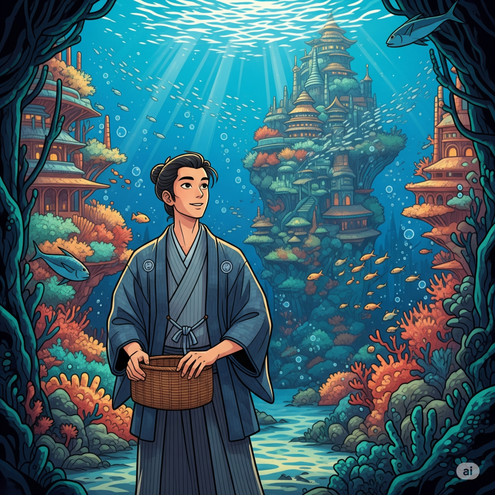 When the Sea King heard his story, he called all the fish to ask if anyone had seen the missing hook. At last, the red bream fish admitted, “I accidentally swallowed it!”