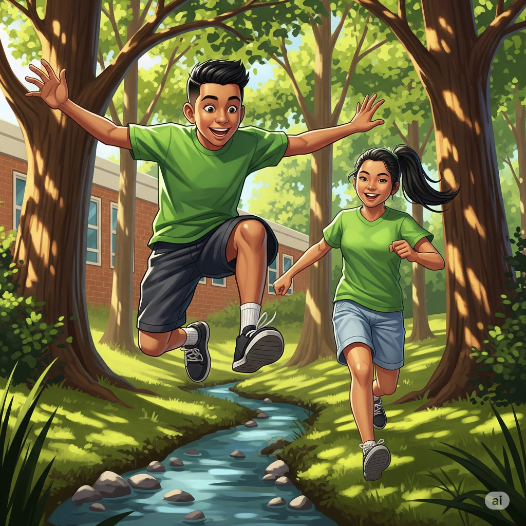 Halfway through, we made our boldest move: ducking through the shallow creek that ran behind the school. The water splashed around our sneakers as we jogged upstream for twenty yards before hopping back onto the grass. I hoped the running water would scatter the trail just enough to confuse the Sprinters.